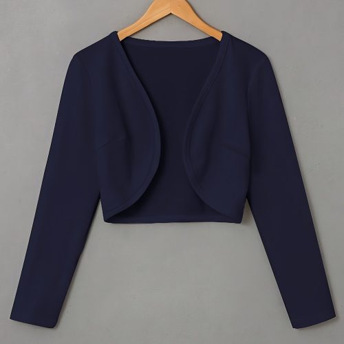Solid Color Open Front Crop Jacket, Versatile Long Sleeve Outwear For Spring & Fall, Women’s Clothing