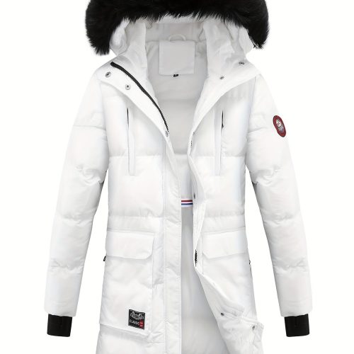 Women’s Warm Winter Waterproof Hooded Puffer Jacket, Thicken Fleece Lined Jacket With Removable Faux Fur Trim, Women’s Clothing