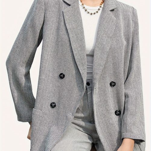 Double Breasted Lapel Pockets Blazer, Elegant Long Sleeve Outwear For Office & Work, Women’s Clothing
