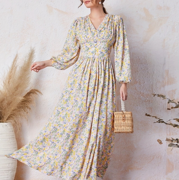 Delicate Florals and Elegant Long Sleeves: Exploring the Endless Possibilities of V-Neck Dresses