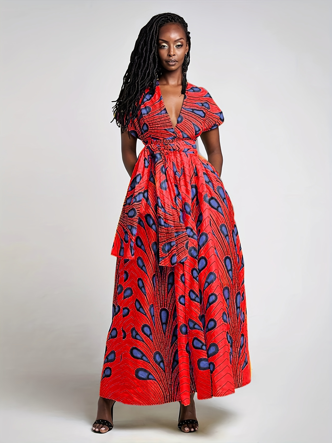 5 reviews for Abstract Print Split Thigh Dress, Boho Plunging High Waist Maxi Dress, Women’s Clothing