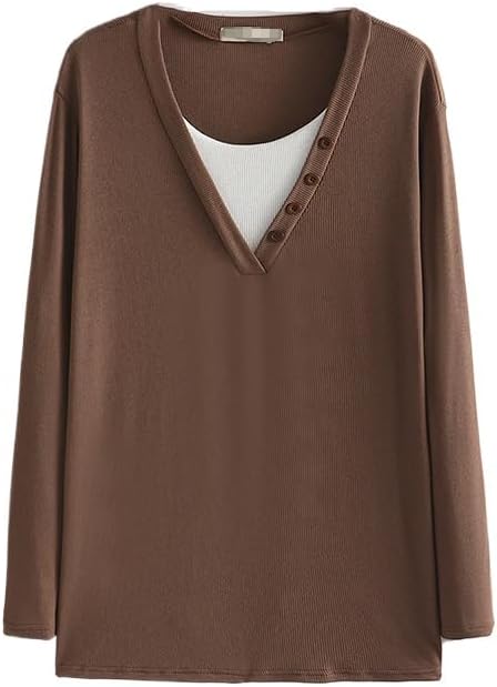 Autumn/Winter Women Fashion Plus Size Sweater Block Color O-Neck Button Knitwear Casual False Two Pieces Long Sleeve top