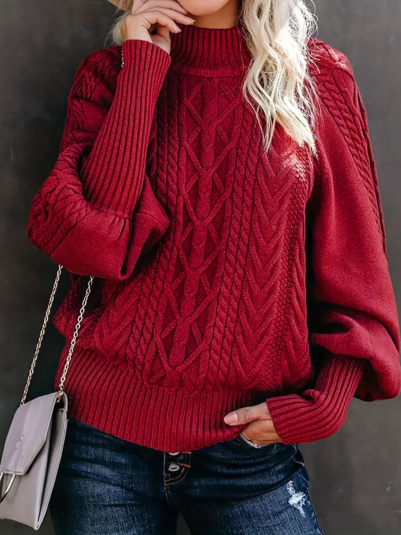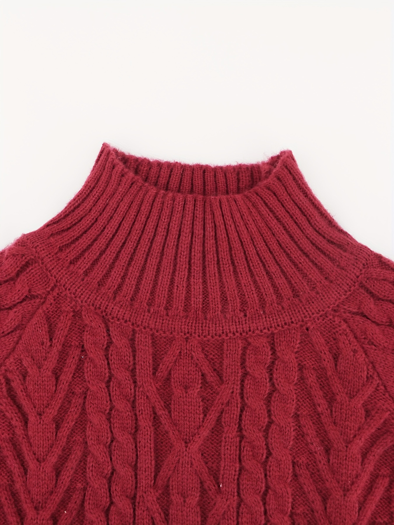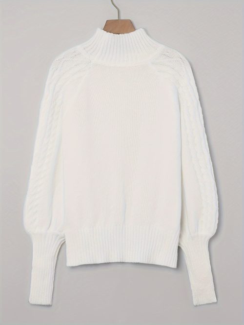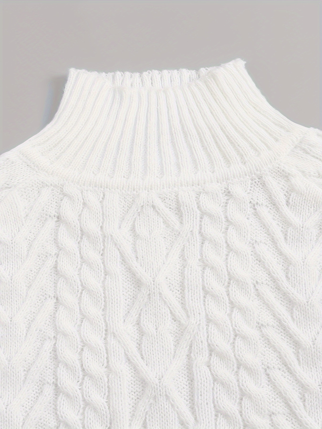 Cable Knit Turtle Neck Sweater, Casual Long Sleeve Sweater For Fall & Winter, Women’s Clothing