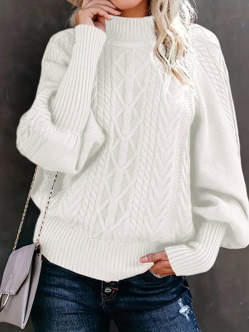 Be the first to review “Cable Knit Turtle Neck Sweater, Casual Long Sleeve Sweater For Fall & Winter, Women’s Clothing”