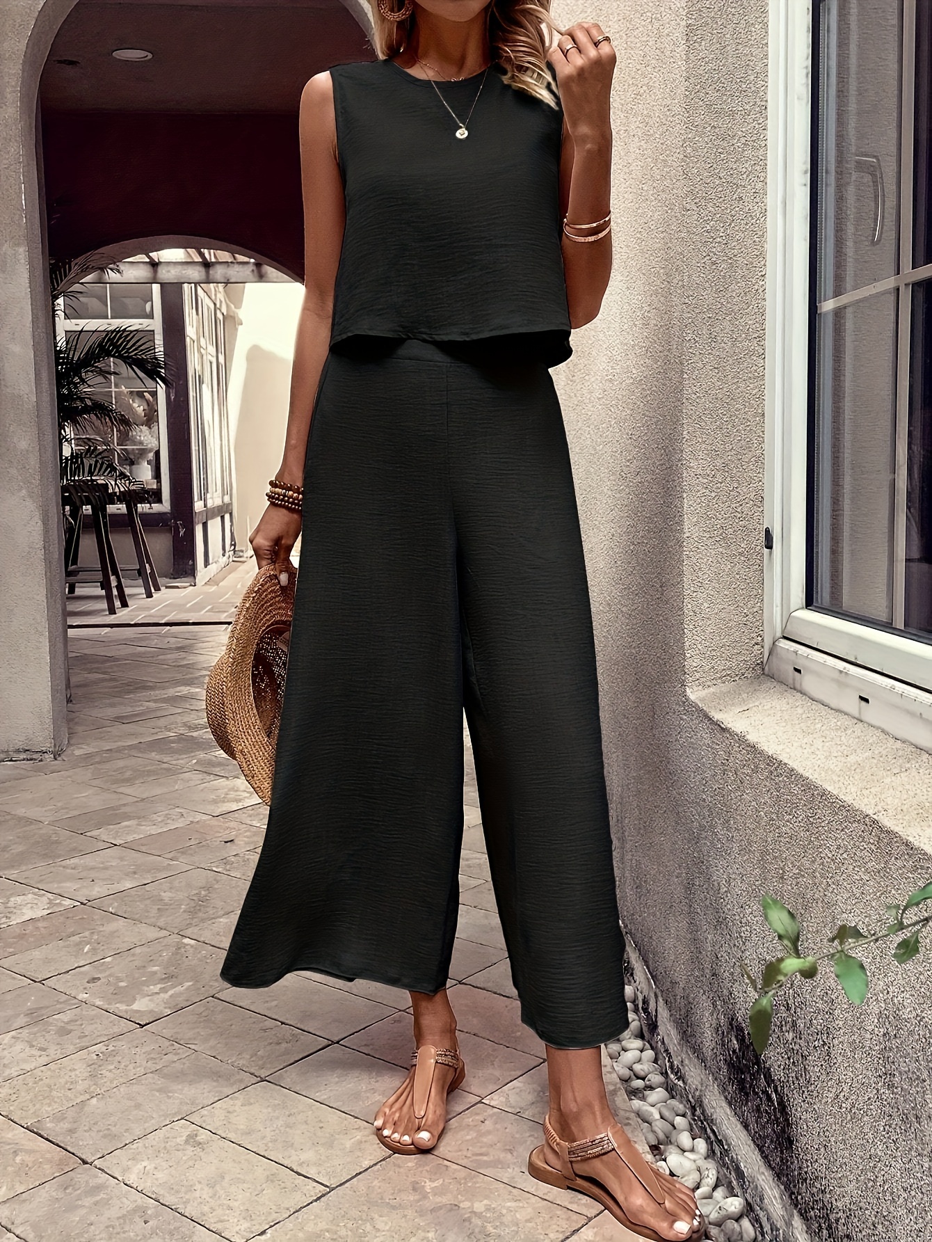 Reviews There are no reviews yet. Be the first to review “Elegant Solid Color Pantsuits Set, Crew Neck Tank Top & Wide Leg Pants Outfits, Women’s Clothing”Cancel ReplyYour email address will not be published. Required fields are marked *Your rating * Rate… Perfect Good Average Not that bad Very poor Name *Email *Your review * I accept the Privacy Policy Submit