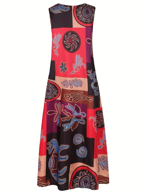 Be the first to review “Ethnic Print V Neck Dress, Vintage Sleeveless Summer Maxi Dress With Pockets, Women’s Clothing”