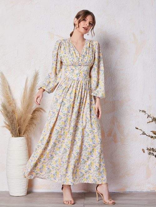 Be the first to review “Floral Print V Neck Dress, Elegant Long Sleeve Dress For Spring & Summer, Women’s Clothing”