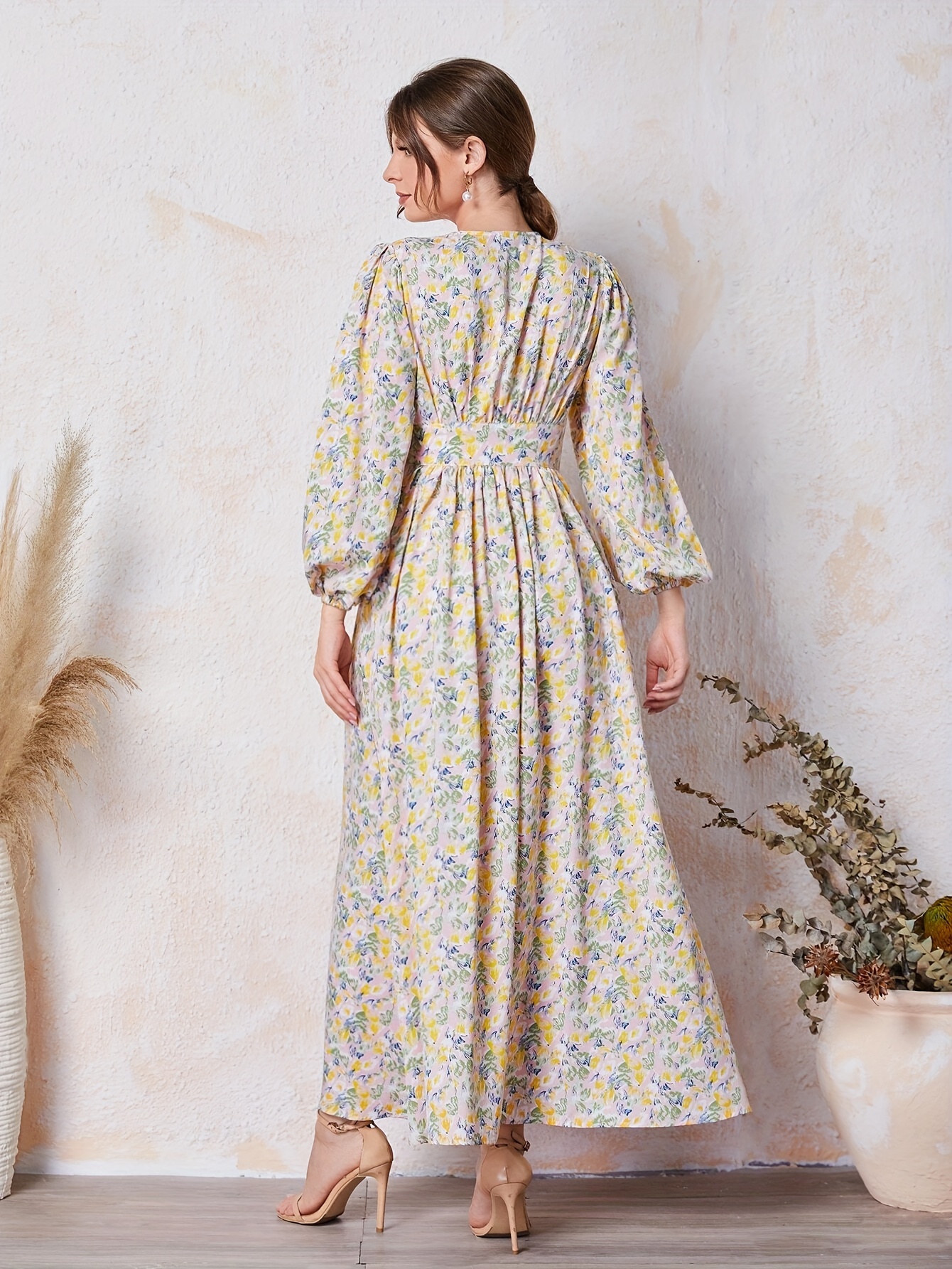 Floral Print V Neck Dress, Elegant Long Sleeve Dress For Spring & Summer, Women’s Clothing