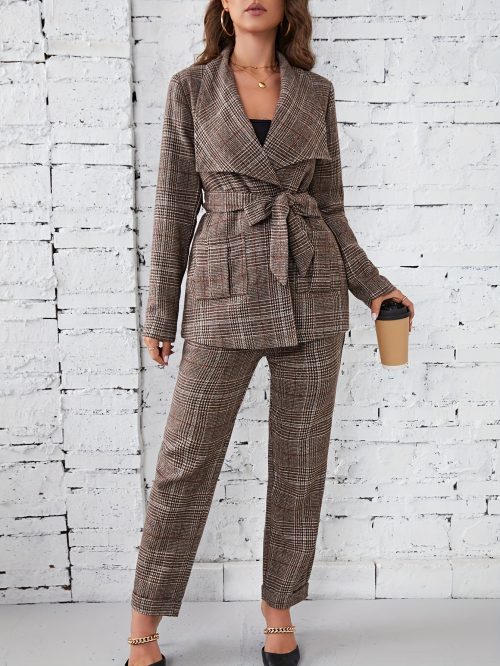 Be the first to review “Plaid Pattern Elegant Two-piece Set, Long Sleeve Open Front Tops & Wide Leg Pants Outfits, Women’s Clothing”