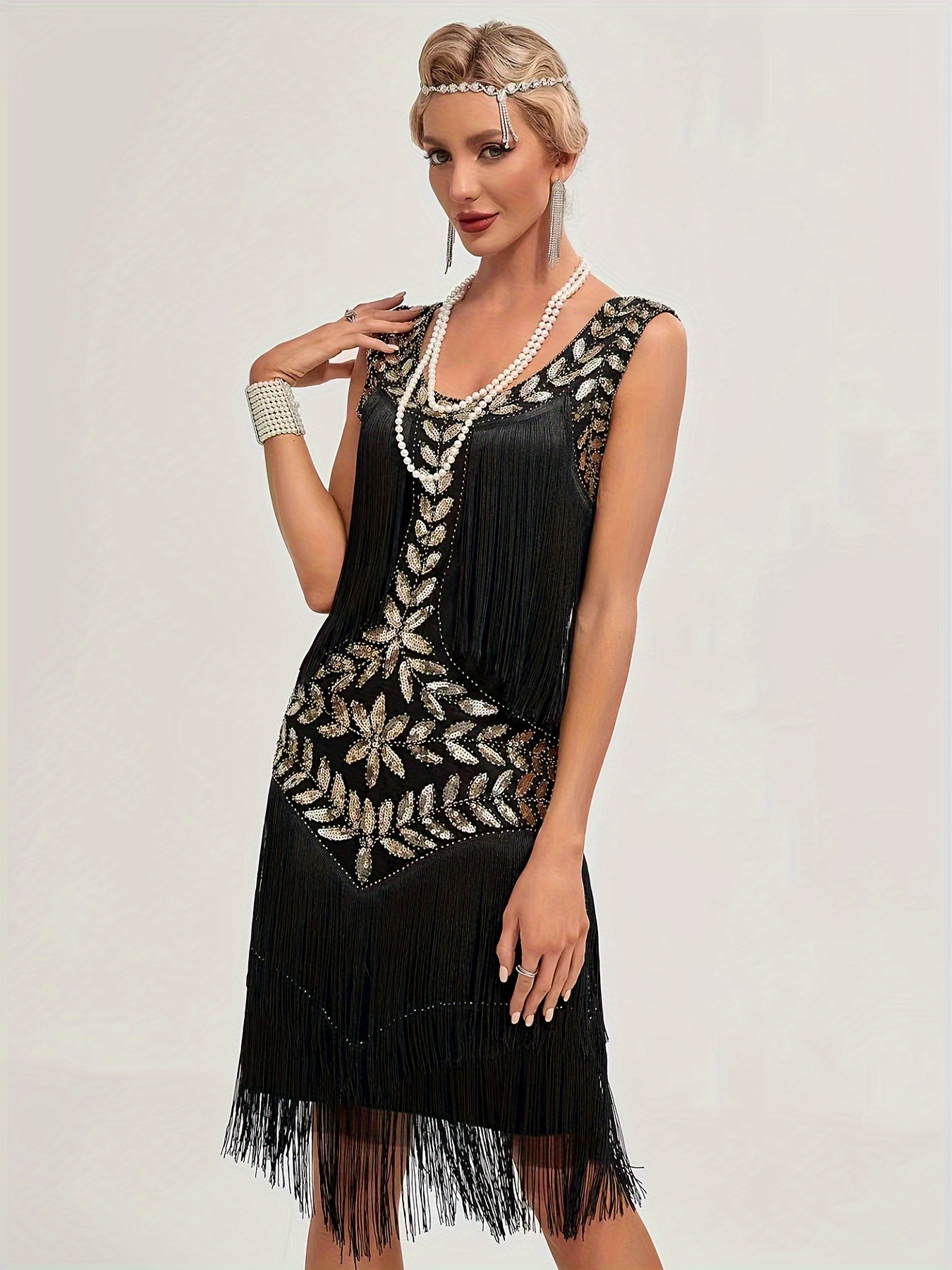Be the first to review “Sequin Fringe Decor Tank Dress, Vintage Sleeveless Flapper Tank Dress For Party & Banquet, Women’s Clothing”
