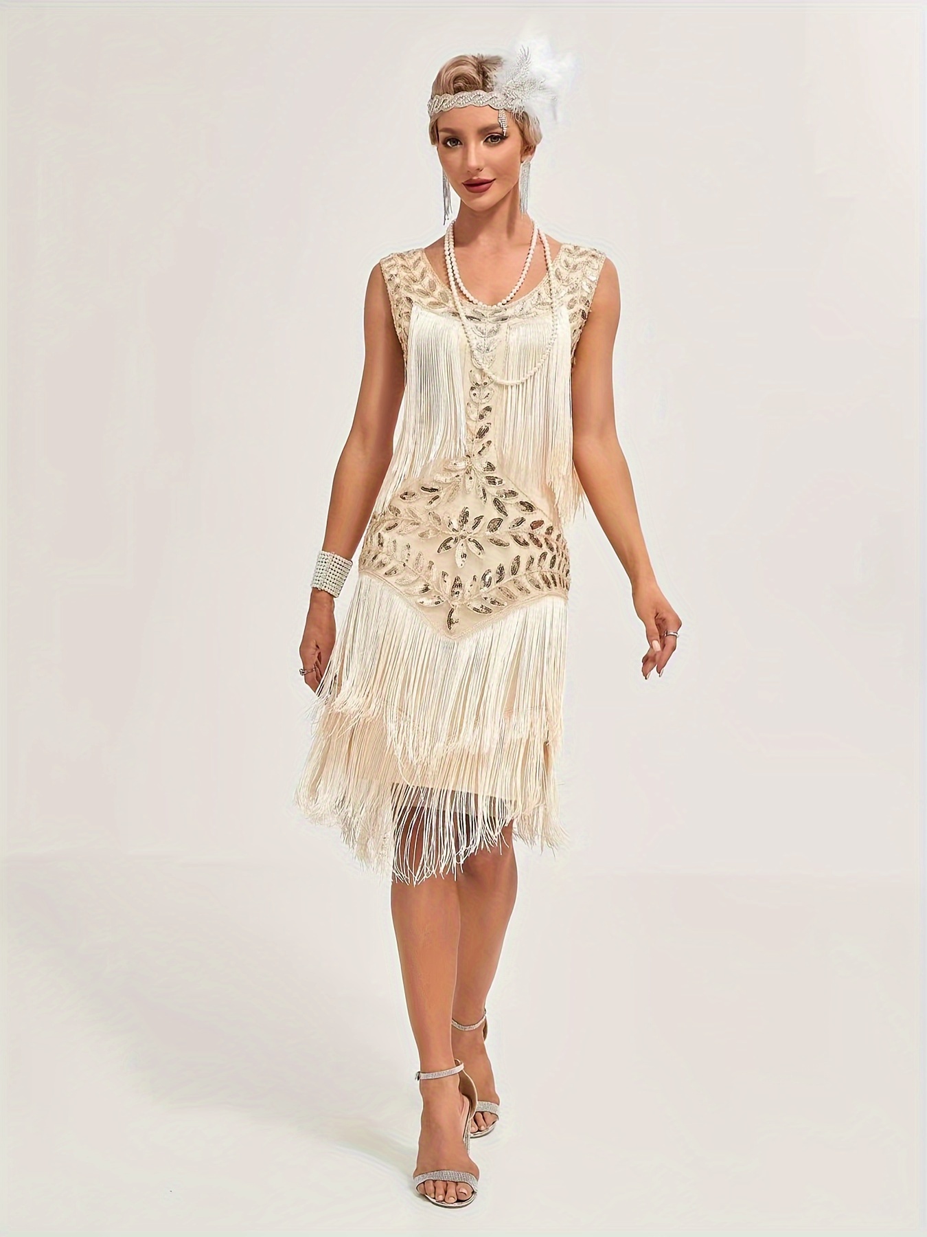 Sequin Fringe Decor Tank Dress, Vintage Sleeveless Flapper Tank Dress For Party & Banquet, Women’s Clothing