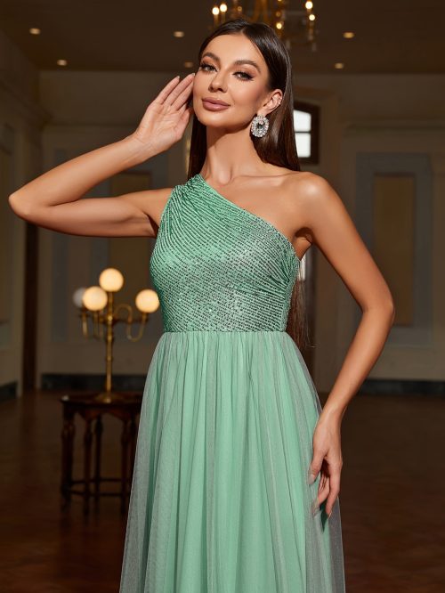 Be the first to review “Sequin One Shoulder Contrast Mesh Dress, Elegant Sleeveless Floor Length Formal Dress For Party & Banquet, Women’s Clothing For Party Dressing”