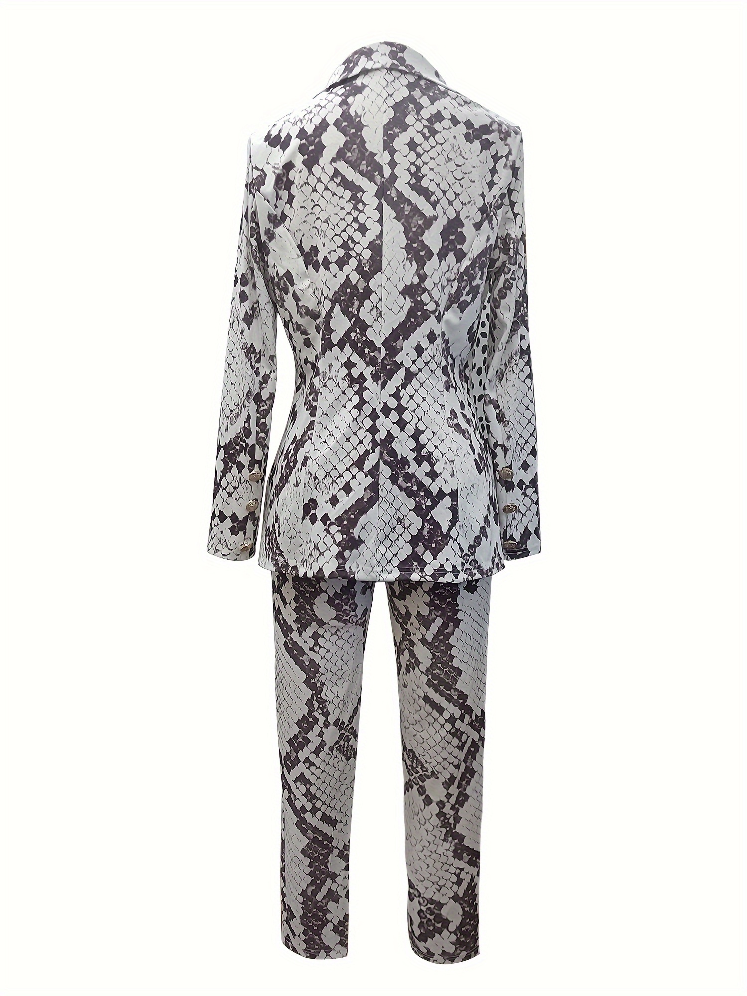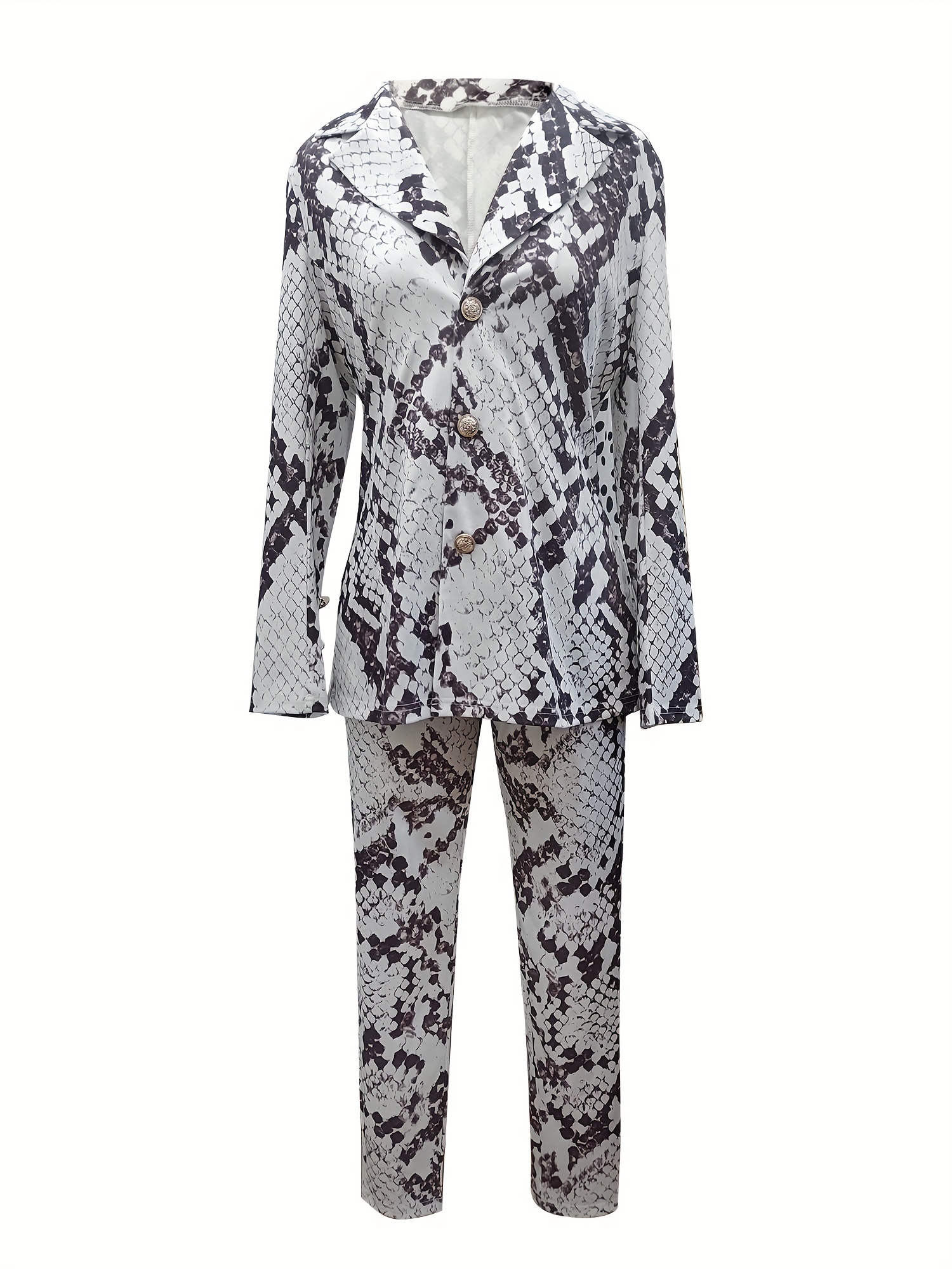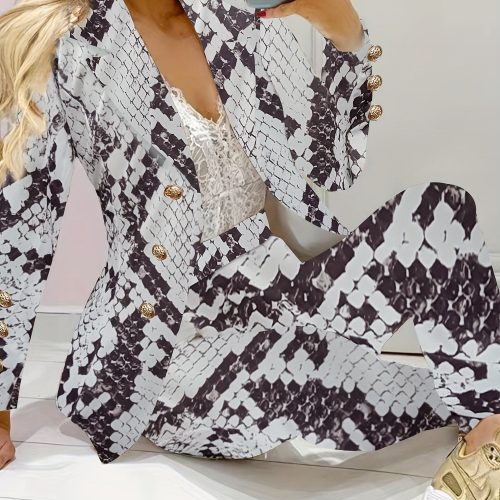 Reviews There are no reviews yet. Be the first to review “Snake Skin Print Two-piece Set, Single Breasted Lapel Blazer & Straight Leg Pants Outfits, Women’s Clothing”Cancel ReplyYour email address will not be published. Required fields are marked *Your rating * Rate… Perfect Good Average Not that bad Very poor Name *Email *Your review * I accept the Privacy Policy Submit