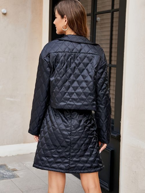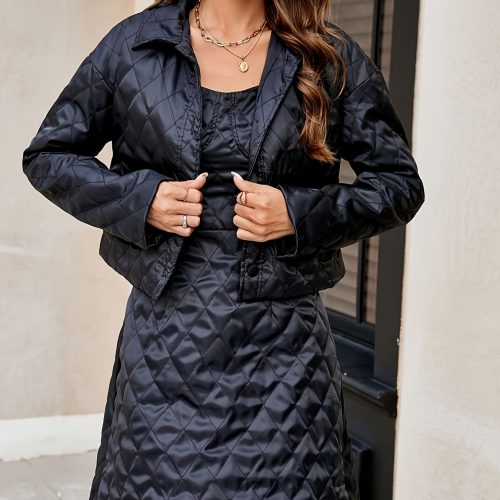 Be the first to review “Solid Color Two-piece Set, Button Front Long Sleeve Jacket & Dress Outfits, Women’s Clothing”