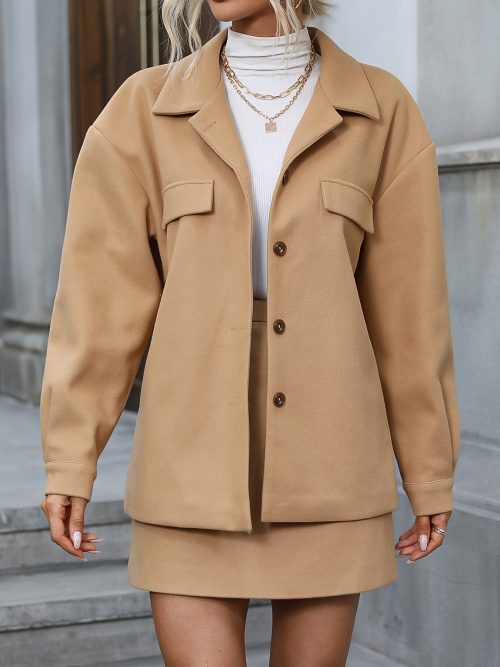 Reviews There are no reviews yet. Be the first to review “Solid Elegant Two-piece Set, Button Front Long Sleeve Jacket & High Waist Mini Skirts Outfits, Women’s Clothing”Cancel ReplyYour email address will not be published. Required fields are marked *Your rating * Rate… Perfect Good Average Not that bad Very poor Name *Email *Your review * I accept the Privacy Policy Submit