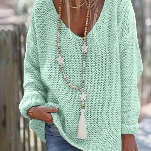 Reviews There are no reviews yet. Be the first to review “Solid V Neck Knitted Pullover Sweater, Casual Long Sleeve Sweater For Spring & Fall, Women’s Clothing”Cancel ReplyYour email address will not be published. Required fields are marked *Your rating * Rate… Perfect Good Average Not that bad Very poor Name *Email *Your review * I accept the Privacy Policy Submit