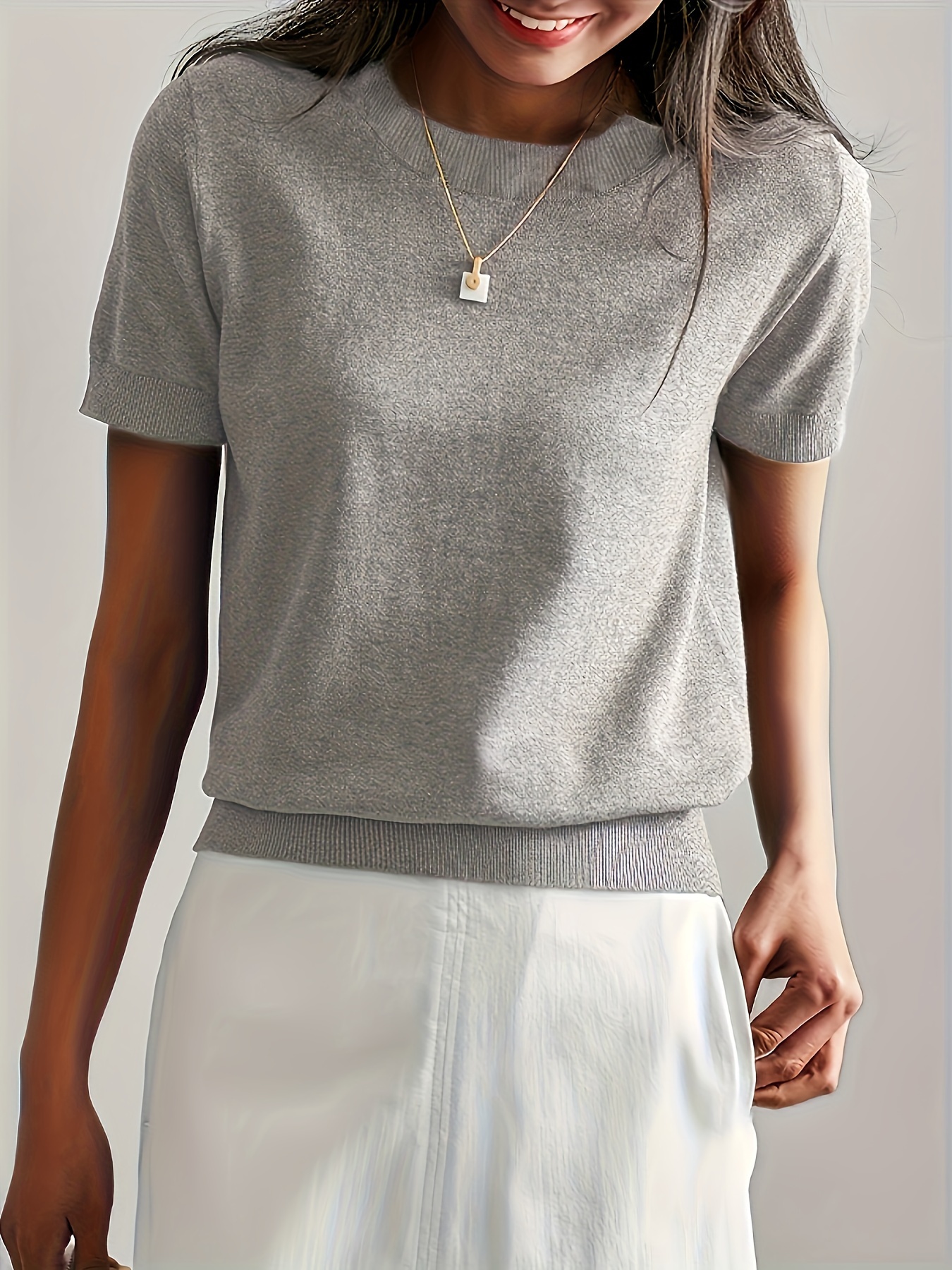 Valentine’s Day Crew Neck Sweater, Casual Short Sleeve Sweater For Spring & Summer, Women’s Clothing