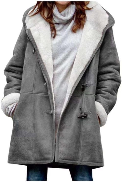 Windproof Sherpa Lined Outerwear for Women Winter, Fashion Fleece Hooded Overcoat with Pockets, Warm and Thicken Parka Jacket