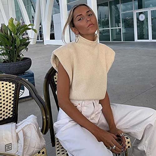 Women’s Sleeveless Turtleneck Sweater Vest Shoulder Pad Knitted Tank Top Casual Solid Pullover Tops Knitwear Product description Size chart(cm/inch): Size(cm) S Shoulder: 52 Bust: 92-100 Waist: 84-92 Length: 57 M Shoulder: 54 Bust: 96-104 Waist: 88-96 Length: 59 L Shoulder: 56 Bust: 100-108 Waist: 92-100 Length: 61 Size(inch) S Shoulder: 20.47 Bust: 36.22-39.37 Waist: 33.07-36.22 Length: 22.44 M Shoulder: 21.26 Bust: 37.8-40.94 Waist: 34.65-37.8 Length: 23.23 L Shoulder: 22.05 Bust: 39.37-42.52 Waist: 36.22-39.37 Length: 24.02 Friendly Tips: 1.Please kindly allow 1-3cm difference according to manual measurement. 2.Please check the measurement chart carefully before you buy the item. 3.Please note that slight color difference should be acceptable due to the light and screen. Thanks. Package Contents 1 x Top